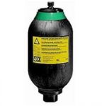 B) An inert gas (nitrogen) is introduced into the PO pressure bladder from a special valve. The bladder expands occupying the entire internal volume of the VO accumulator body.